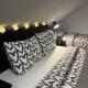 Interiér nabízí dvě ložnice a prostorný obývací prostor vybavený krbem a televizorem s plochou obrazovkou včetně online videotéky (například Netflix). Kuchyňský kout disponuje varnou deskou, lednicí, mikrovlnnou troubou, kávovarem či toustovačem spolu s kompletním kuchyňským vybavením pro přípravu jídel i nápojů. K dispozici jsou rovněž psací stůl, pračka a topení, koupelna zahrnuje vanu nebo sprchu, další toaletu a zdarma toaletní potřeby jako šampon či sprchový gel.