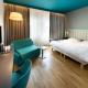 Le camere dell’hotel sono luminose ed eleganti, ogni ambiente è climatizzato e comprende una TV a schermo piatto, armadio o guardaroba, cassaforte personale e una piccola scrivania su rotelle. Sono disponibili lettini per bambini e divani letto in alcune sistemazioni. Il bagno privato può essere dotato di vasca o doccia a filo pavimento ed è fornito di asciugacapelli oltre a prodotti da bagno omaggio come shampoo, balsamo e bagnoschiuma, non mancano accappatoi e pantofole per un maggiore comfort.